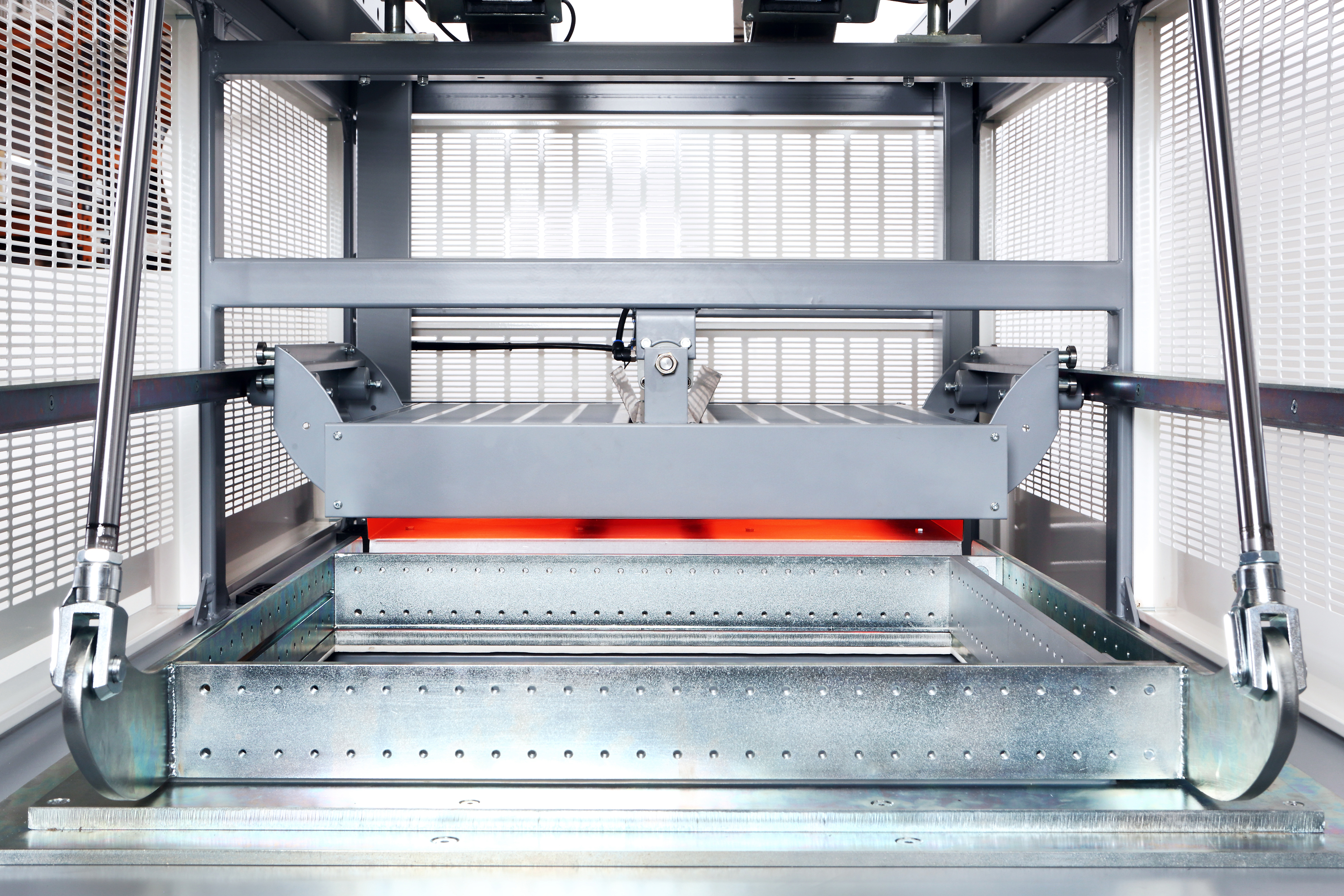 Heavy duty pneumatically powered heater travel provides precise and rapid heater deployment, whilst braking prevents element damage.