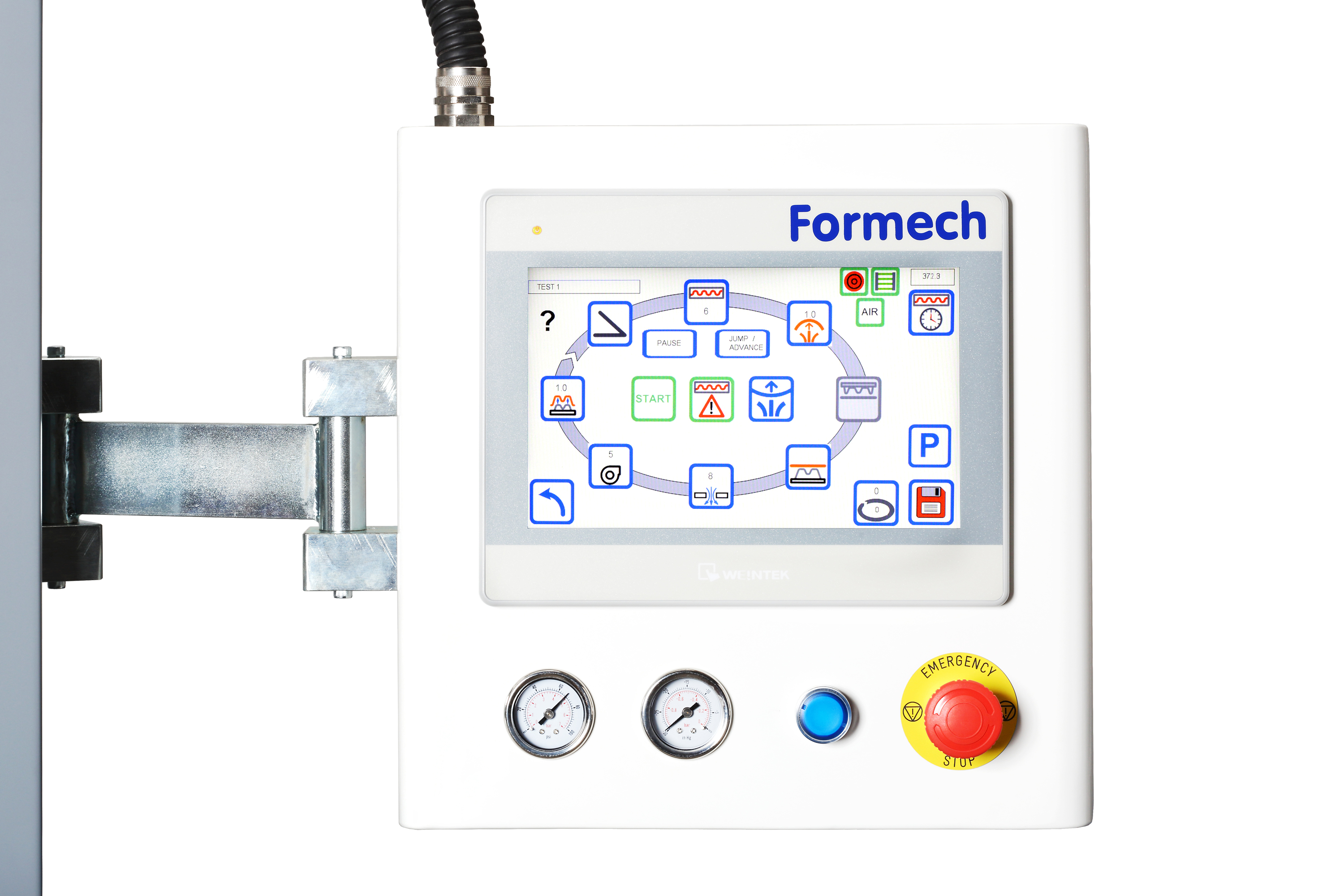 Wago control system with 10" colour touch screen, real time adjustments, 1% heater increment control, Formech Cycle View and 40 preset memories.