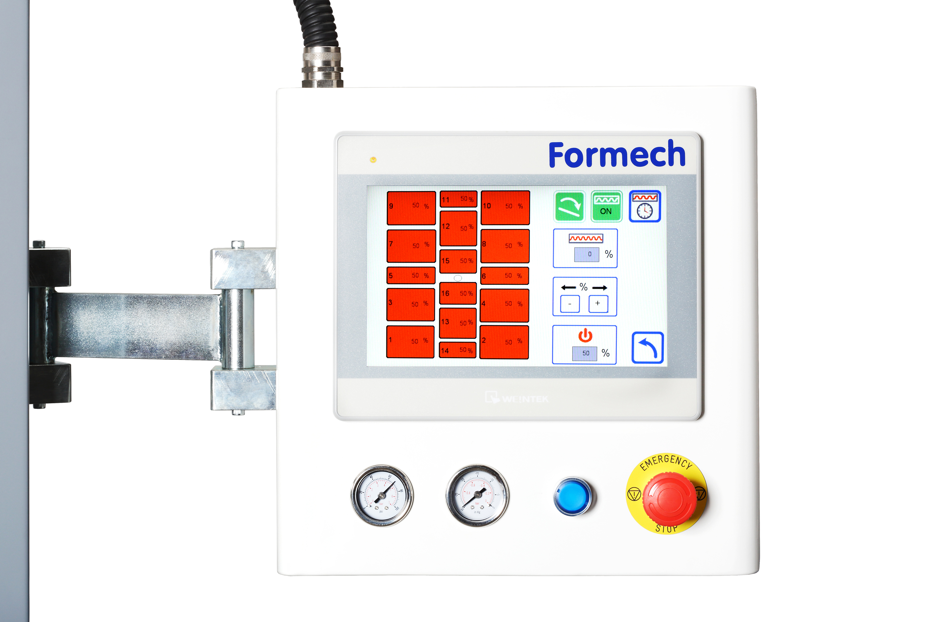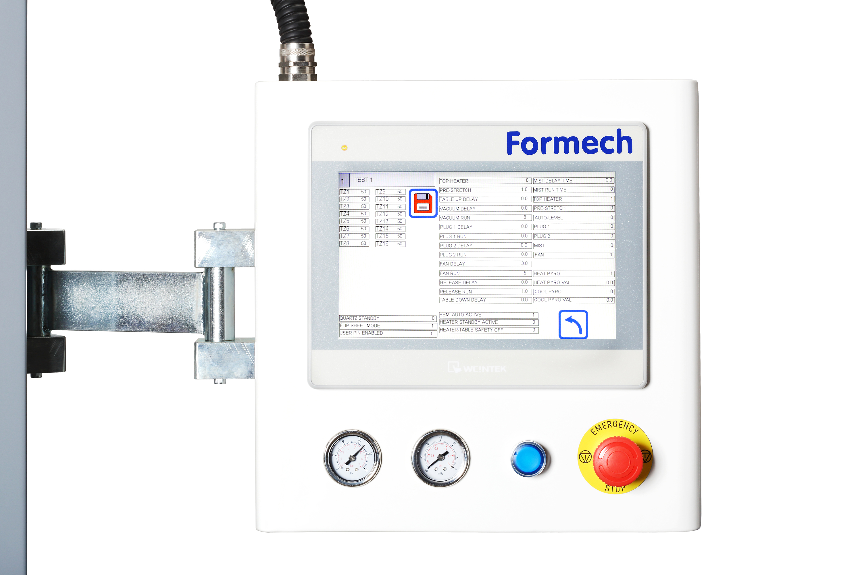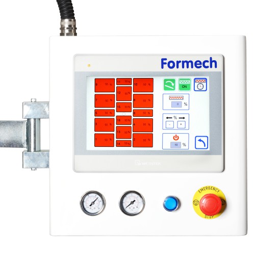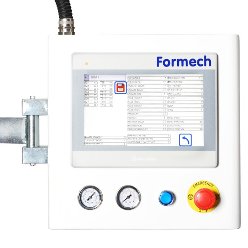 Wago control system with 10" colour touch screen, real time adjustments, 1% heater increment control, Formech Cycle View and 40 preset memories.