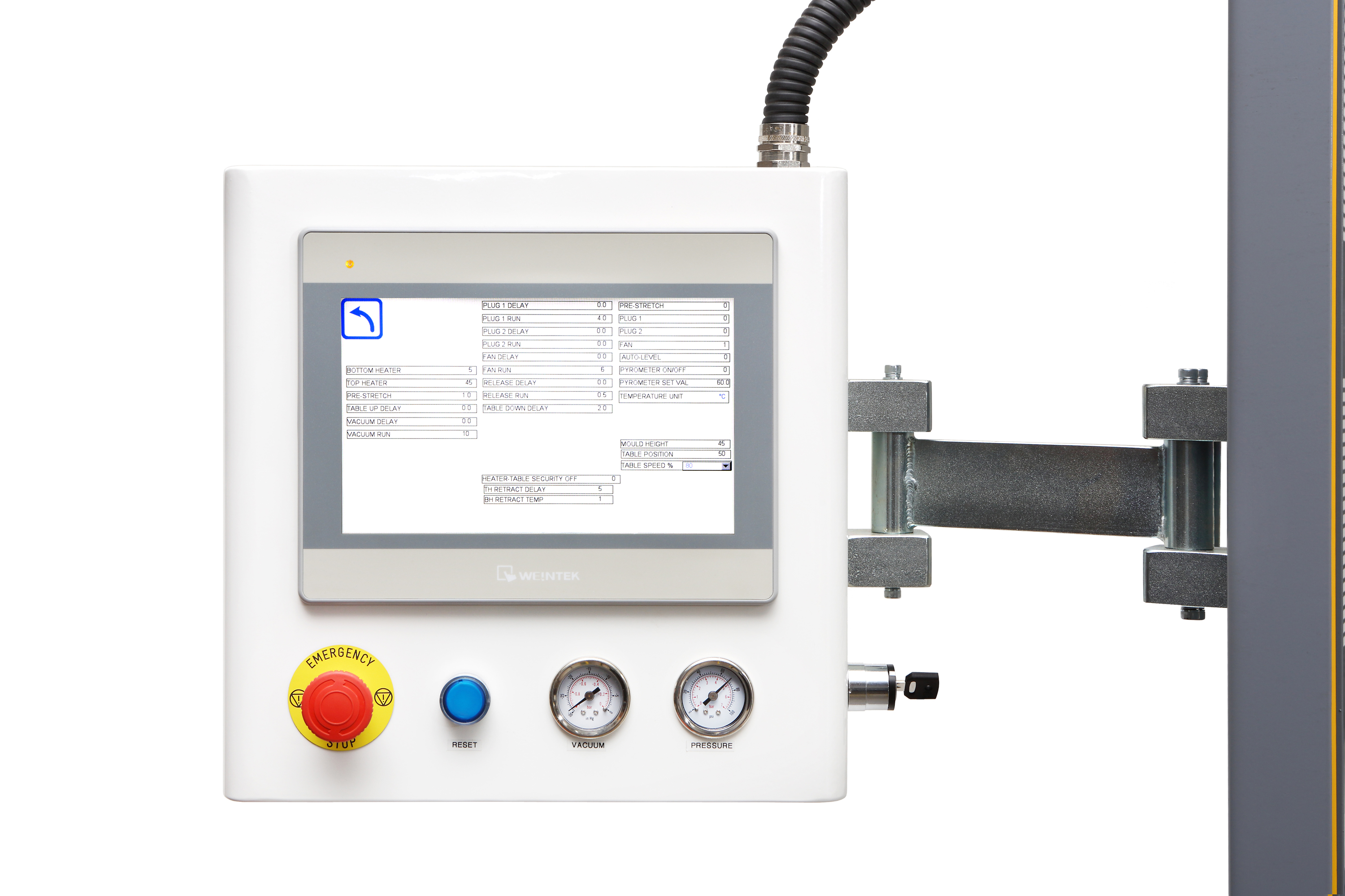 Wago control system with 10" colour touch screen, real time adjustments, 1% heater increment control, Formech Cycle View and 40 preset memories.
