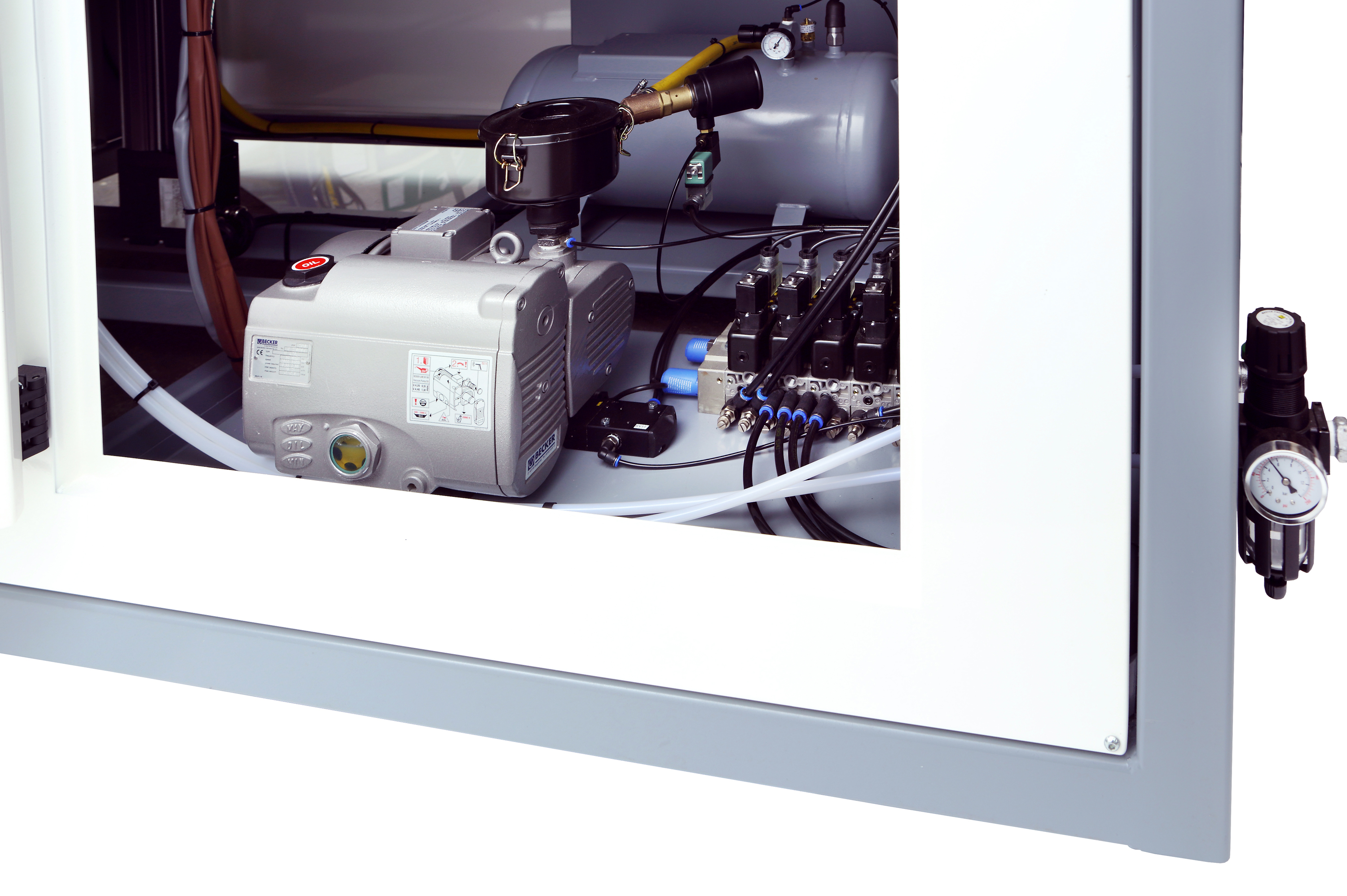 A vacuum tank that provides instant stored vacuum, for high demanding materials and shortening cycle times.