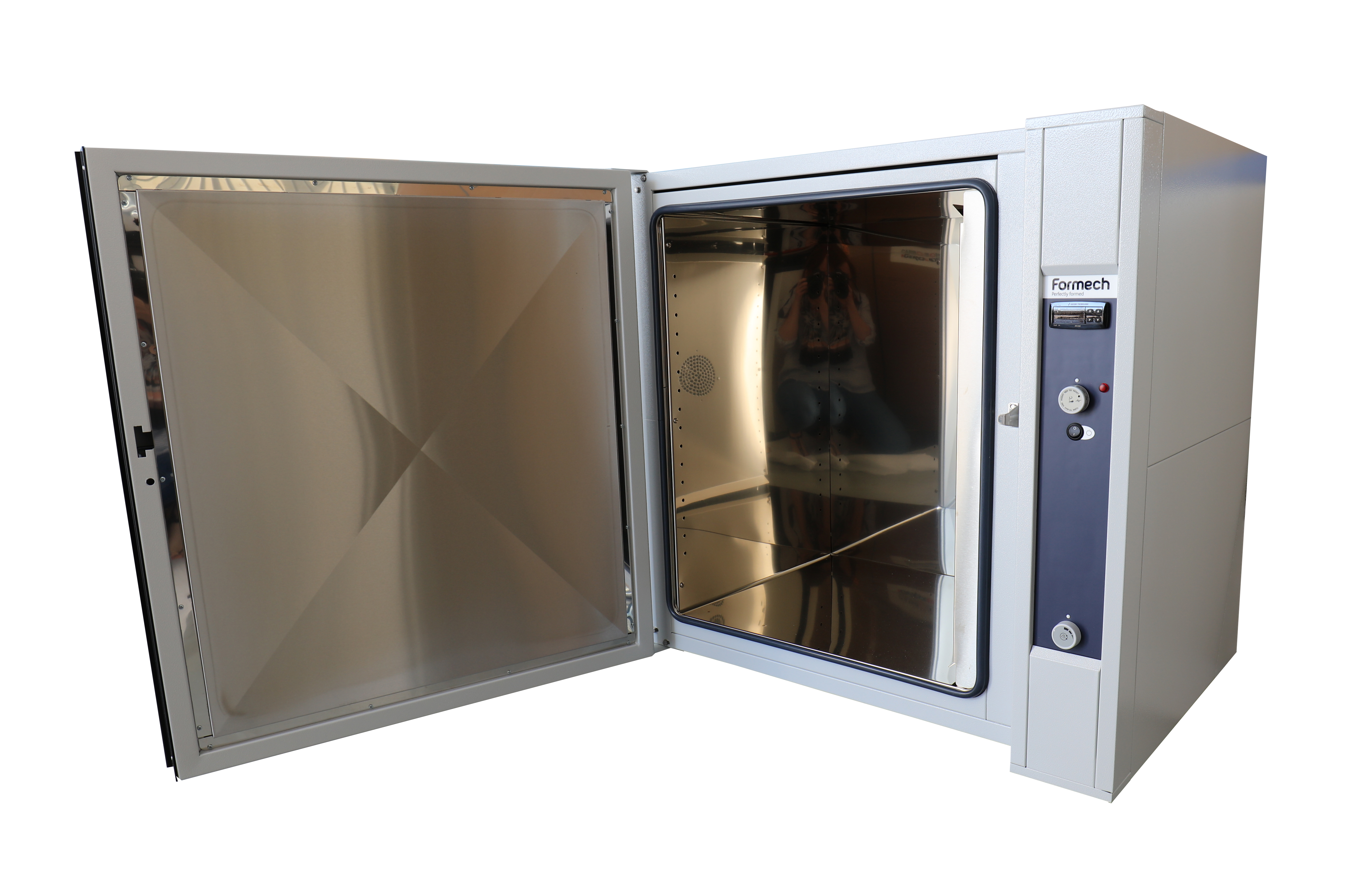 The plastic sheet is placed on each shelf. It may be possible to put two sheets of plastic on each shelf, providing it is fairly thin. It features a digital temperature controller and an over temperature controller, as a safety backup feature.
