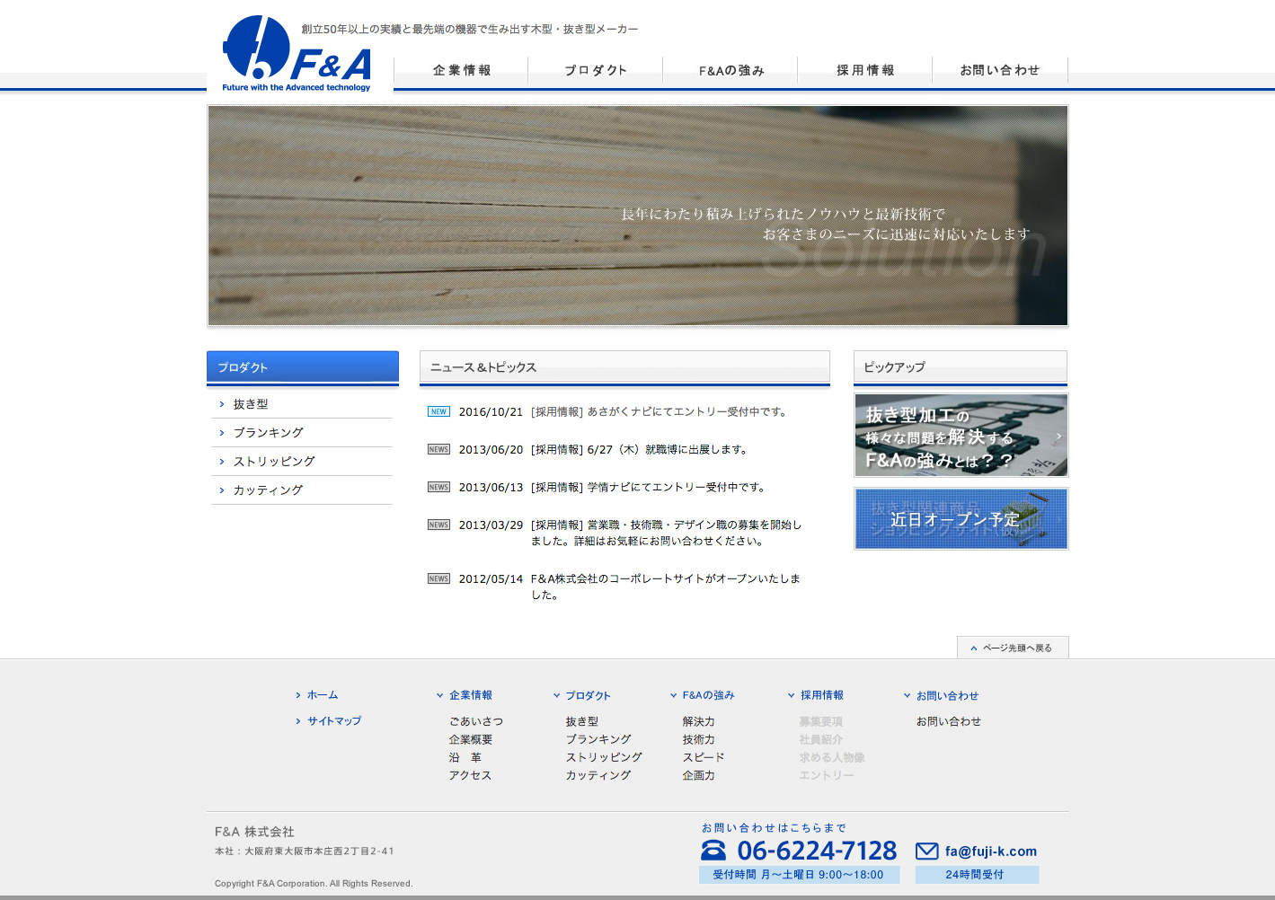 F&Aでは新規商品への開発の取組みが積極的に行われている。 日本の抜き方技術は欧米に比べスローペースだがF&Aではシンクタンク的なセクションをもっているため研究開発などにも取組んでいる。 ただ単に従来の木型製造にとどまるのではなく、積極的に欧米にも足を運び先端の技術を取入れることに前向きな企業である。ゴム1つをとっても問題になっているビビリ、紙粉対策などに対して、素材だけでなく角度や形状などにも工夫をこらし、日々顧客と直接向かい合って研究開発を行うシンクタンクセクションが設けられている。 F&Aの常に先を見据えた業務展開には、世界で知り得た技術をすぐに実現するバイタリティと、欧米のものまねで終わらず独自のアレンジを加え日本市場に適した形へと進化させていける長年積み重ねられた確固たる技術力がある。