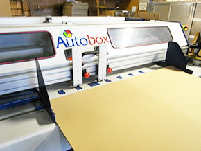同社は、2015年3月に「オンデマンドボックスシステム Autobox (オートボックス)」機を導入。 Autobox は、あらかじめ登録されている100のボックス形状に寸法を入力するだけで、1つから簡単に箱を作ることができるシステム。