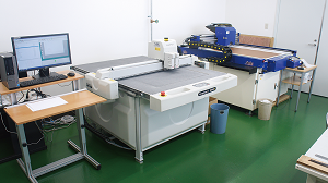 大内氏 「Kongsbergの用途は印刷とトムソンの抜きズレの事前検証、サンプルカットですが、弊社ではサンプルにおいても品質を最重視しています。 特に罫線はトムソンでの仕上がりにできるだけ近づけるため、以前は手作業による追い加工を行っており、時間がかっていました。 ArtiosCADには面切りを行う機能があるため、面切りをしたサンプルの生産が容易になりました。 Kongsbergの加工速度の速さも相まって100枚以上作成する量産サンプルにも簡単に対応できるようになりました。 おかげで今では面切りを入れたサンプルが標準となっています。製版用の割り付けも企画営業部で担当していますが、 隣にある製版部との割り付けデータのやり取りも、ArtiosCAD のおかげでスムーズに行えています。 面板も機械導入に合わせて内製化した部分ですが、データ作成・機械操作も簡単ですぐに立ち上げることができました」