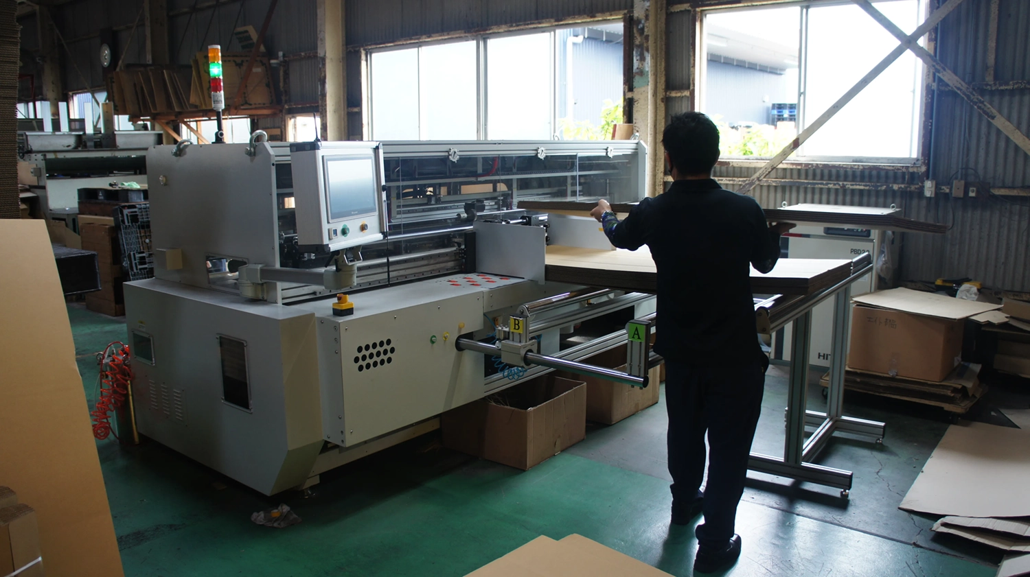 これまで使用していた機械では、罫線入れ・断裁を2つの工程で行なっていた為、仕掛かり状態の製品を加工待ちで一時的に置いておくのですが、