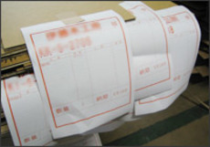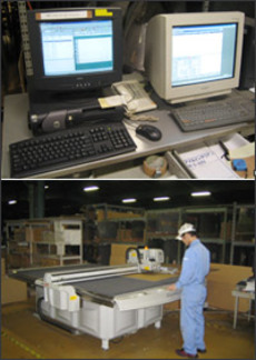 まさにオフコンとCAD・カット機を結ぶ中継システムである。この時、同時にプリンターへカンバンの出力も可能でオフコンからのデータを 元に正確な情報が行き渡る理想的なフローを創り出すことに成功している。1つの情報を元にカンバンと図面データが生成され送られてくるため、 現場では迷うことなく生産性の高い業務が実現する。
