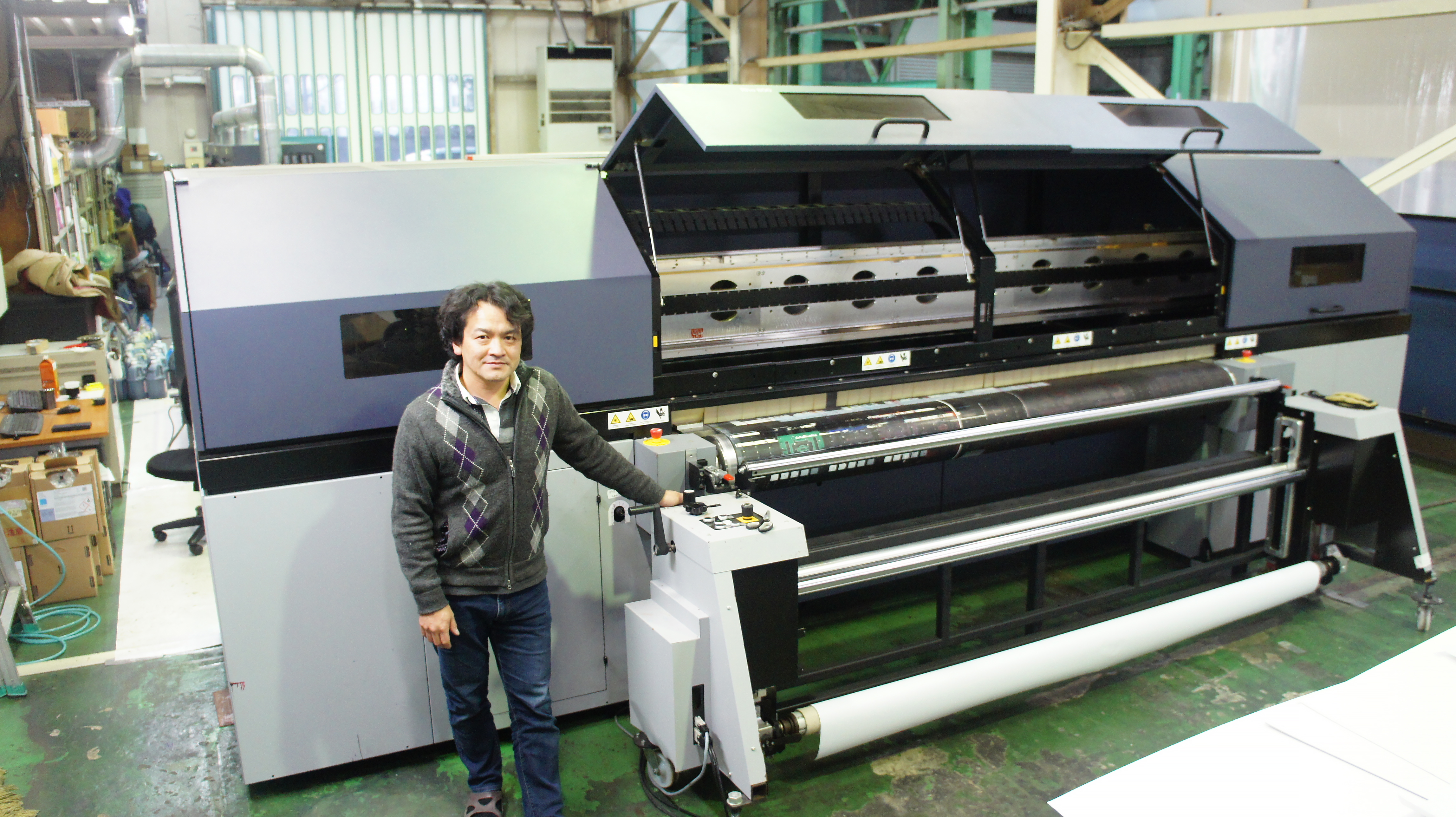 「 Durst は非常に高いUV硬化性能を持ち、インクドロップサイズが大きいRho800はテキスタイル印刷に最適だと思います。 Rho800は Durst の最新機種ではありません。そのためドロップサイズが大きく、最新機種と比較して印刷品質が悪いと思われがちですが、 サイン等の遠方からインパクトある発色をさせたい場合にはRho800の品質がベストだと私は考えています」