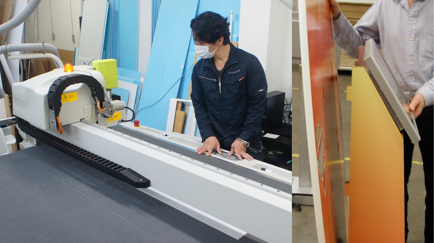 Kongsberg XLを導入した目的は大きく2つあります。1つ目はスチレンやアルミ複合板等を使った各種サインパネル制作の生産性アップ。