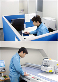日本トーカンパッケージ株式会社様の厚木工場包装技術グループは主に営業がお客様より伺った要望に対し、デザインからサンプルのカット・作成、木型の発注までを行う部署である。