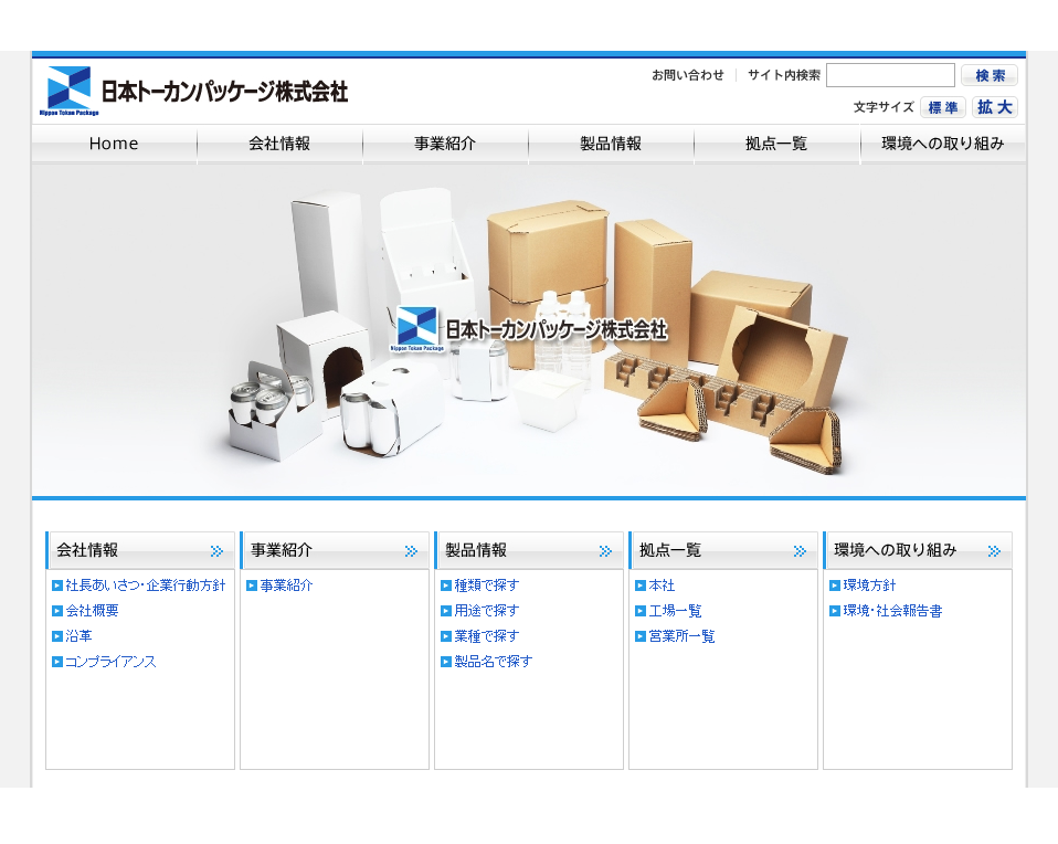 日本トーカンパッケージ株式会社は、国内8箇所の工場と、技術開発センターを持ち、様々なパッケージを作成する総合紙器・段ボールメーカーです。