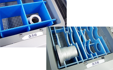 仕切るだけだった梱包方法から、製品にフィットした無駄のない緩衝材に