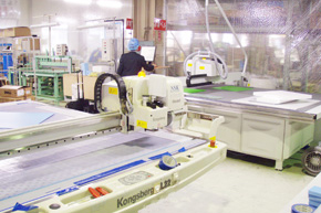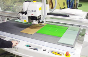 現在、ティ・エス・ケイ株式会社ではマルチカッテシングマシン「 KongsbergXL22 」を2台導入し、提案サンプルの作成だけでなく小ロット生産機として稼働している。