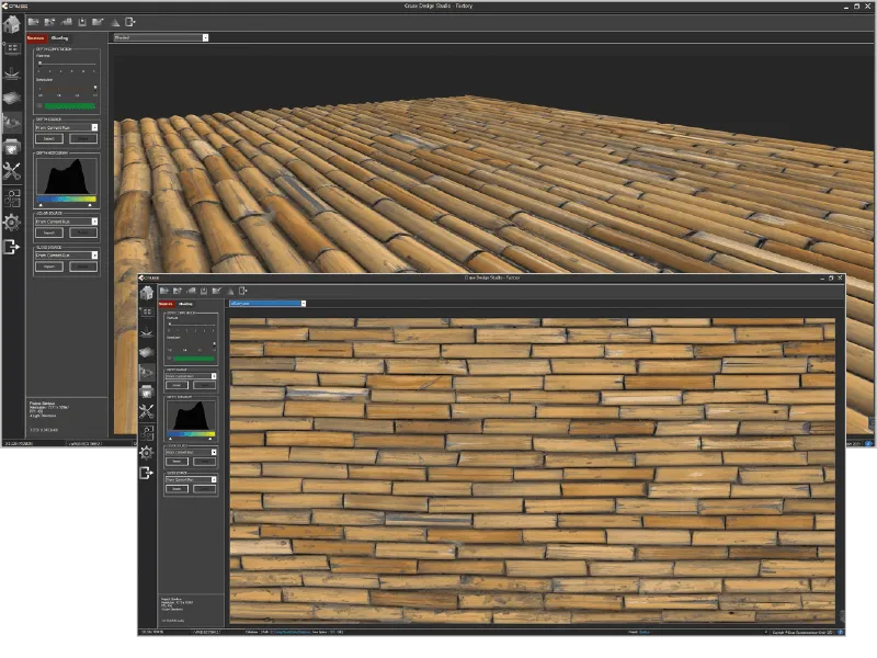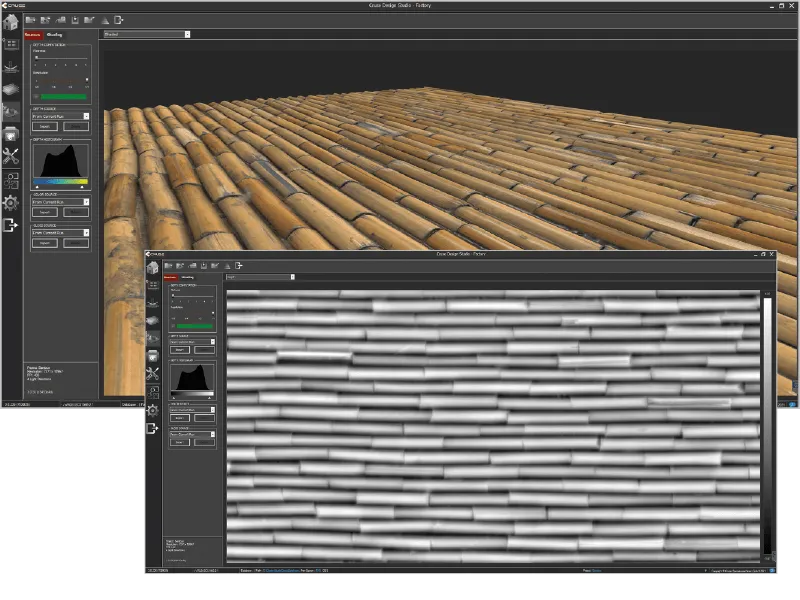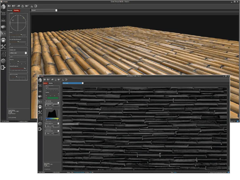 Factoryは超大型サイズのデータ処理を想定して設計されています。 大判スキャンの場合でも計算を行いながらリアルタイムでプレビューを表示し、ライティング・光沢・表面構造などのパラメータをその場で調整できます。