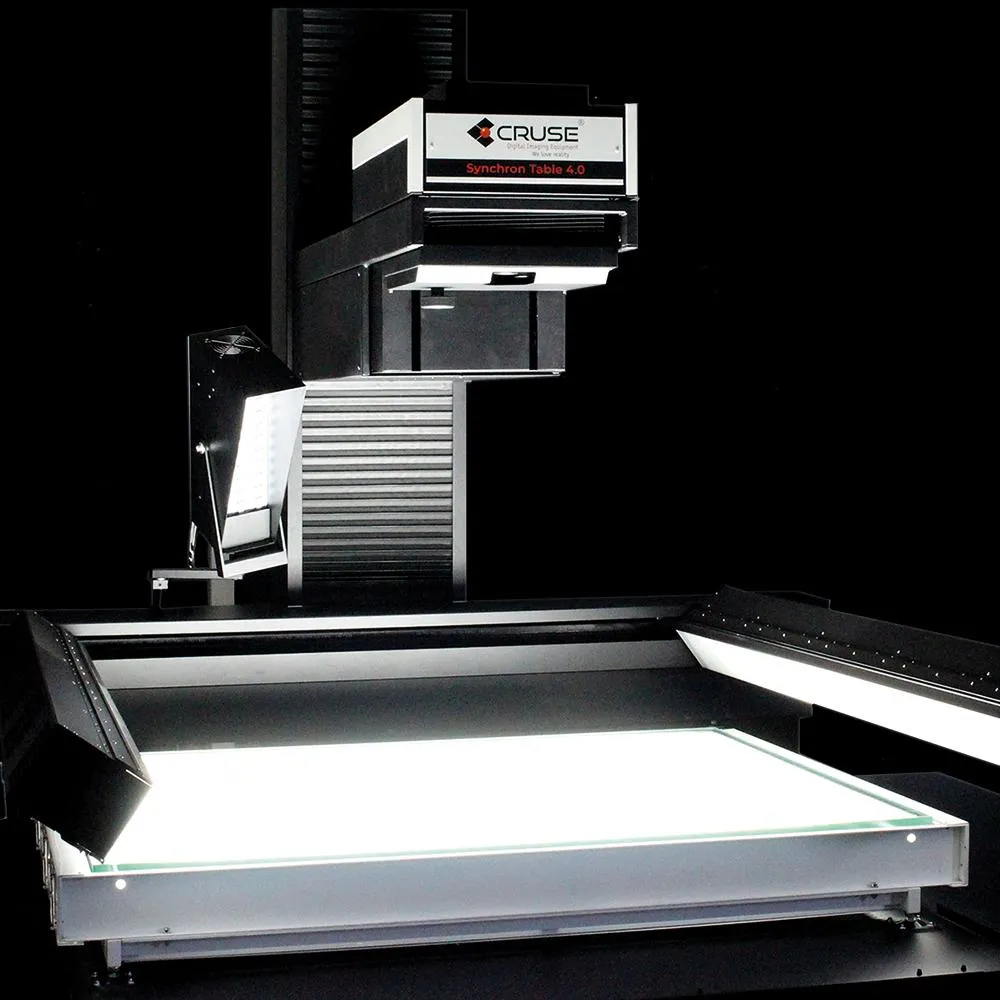 スキャン素材の質感を保持しながらも高品質な色再現を行う。 それを可能にする広範なライティング・オプションを備えたCRUSE Synchrontableスキャナーはどのようなニーズにも応えられるソリューションです。