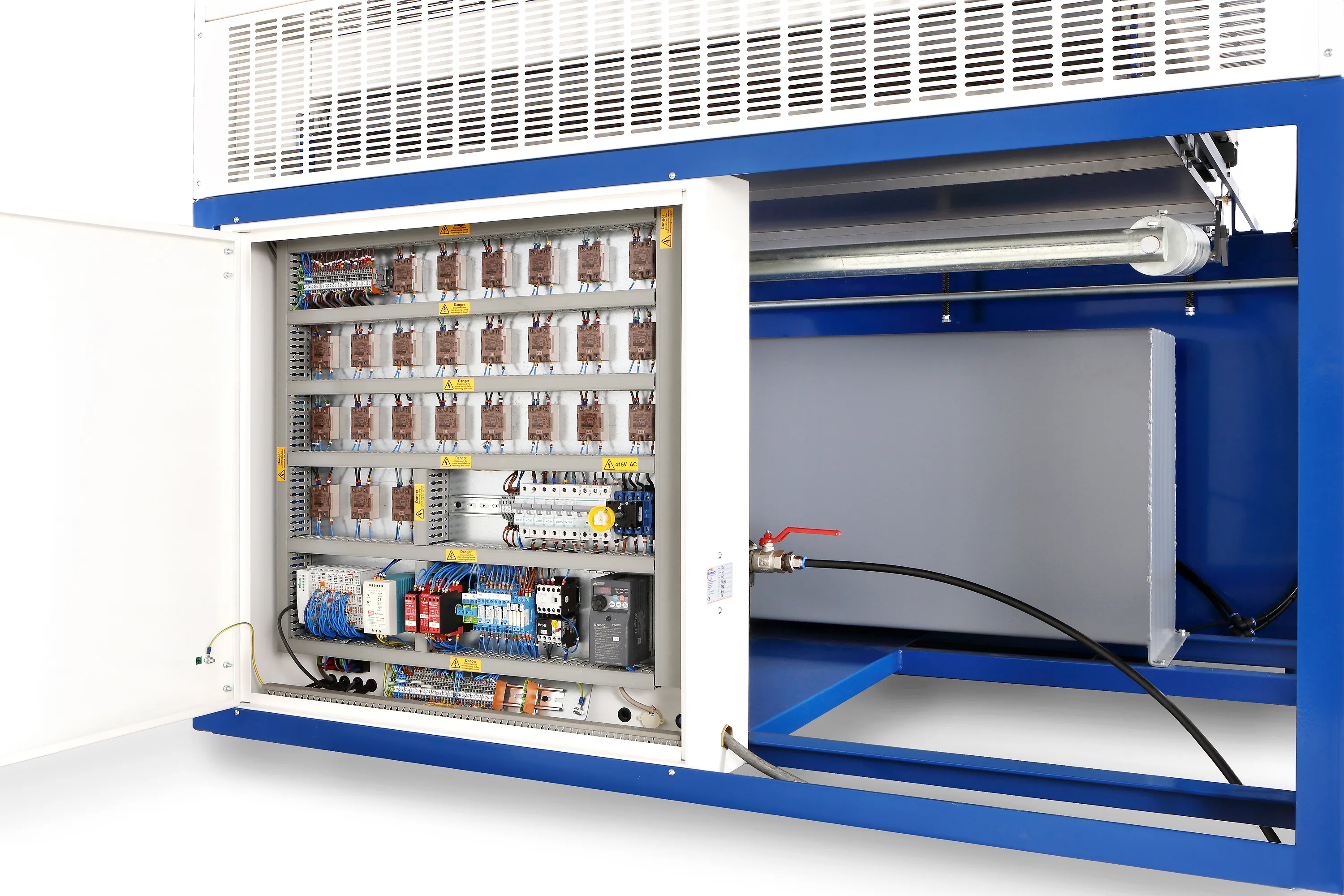 電気ヒーターの駆動と空気圧テーブルにより、簡単な操作で資材の固定が可能です。また、標準装備の真空タンクシステムにより、要求の厳しいアプリケーションや高速サイクルタイムでも早急な対応が可能です。