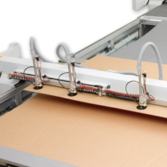 吸着の強さやピックアップポイントを簡単にかつ細かく調節できるので、シートの材質・サイズ・重量に応じて非常に幅広いセッティングを行う事ができます。シワの入りやすい薄紙や、重みのあるコートボールにも対応できる柔軟性を持っています。