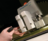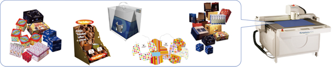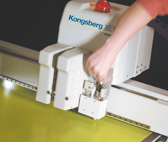 Kongsberg XE10は、スモールフォーマットにおけるシールラベル・POP・サインディスプレイおよびパッケージなどの作成に特化したカッティングマシンです。省スペースで設置できるので、デザインの現場に置き、構造設計後すぐに試作・校正カットといった取り回しのよい運用ができるのが特長です。