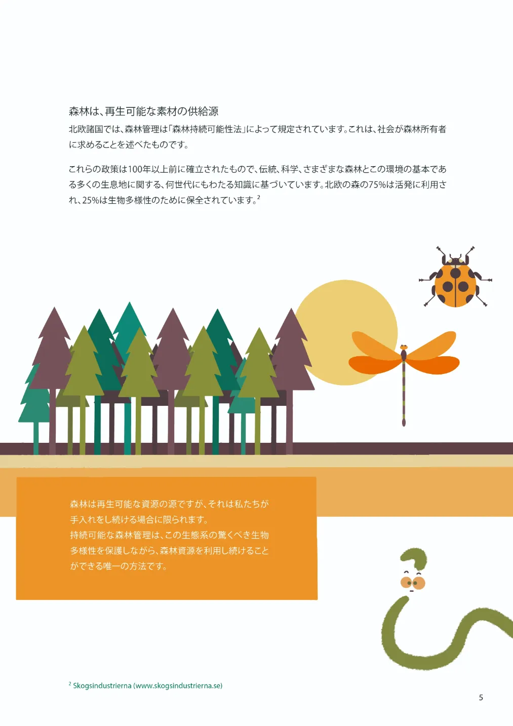 北欧の森林は伐採される木1本につき2~3本の新しい木が植えられ、サステナブルな森林運営がされています。