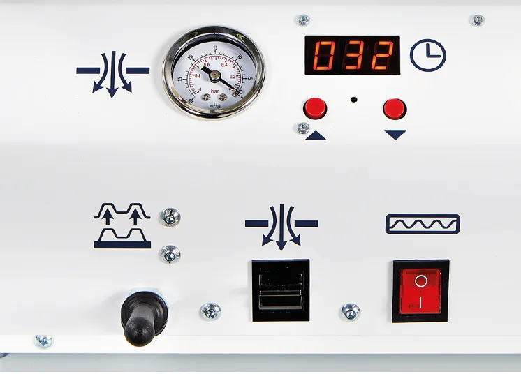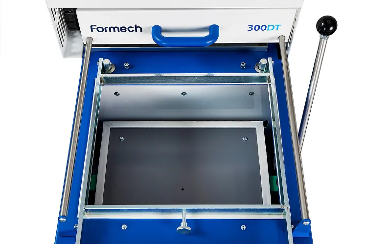 Formechのインターロック機能はヒーターが前方位置にあるときにテーブルが持ち上がるのを防ぐので、初めて操作する方も安心して操作可能です。アラーム付きのデジタルタイマーは一貫したサイクルタイムを行う時に活用できます。