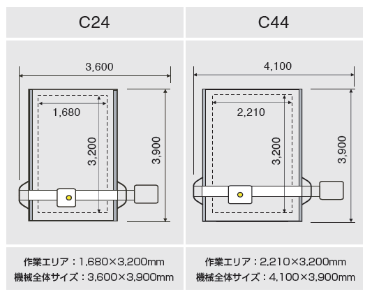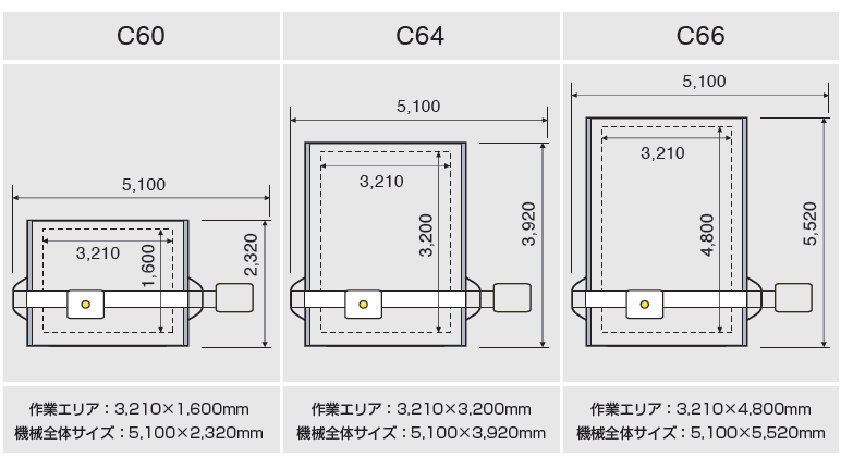 | 作業エリア | 1,680mm × 3,200mm |