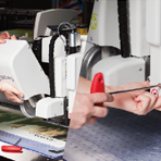 高速で動くアームとヘッド、大きくて重量のある資材の連続加工に耐えるため、ボディ・駆動部共に非常に堅牢性の高いものとなっています。