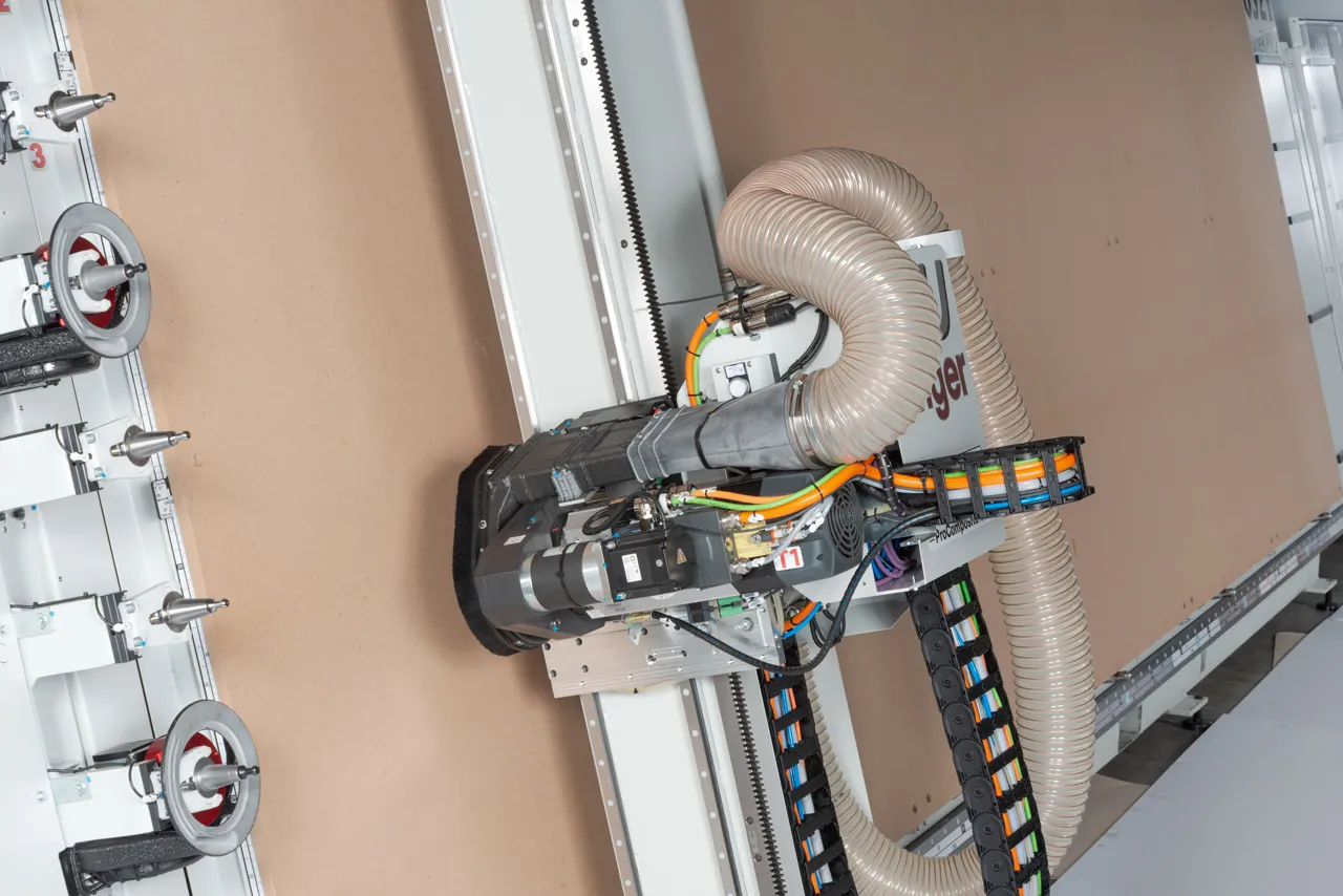 The vertical arrangement of the worktable is also synonymous with greater cleanliness: the waste shavings resulting from machining, which are not sucked up, fall to the ground, leaving the worktable perfectly clean. In addition, access to the worktable for further cleaning is made easy by the ergonomics of the machine.