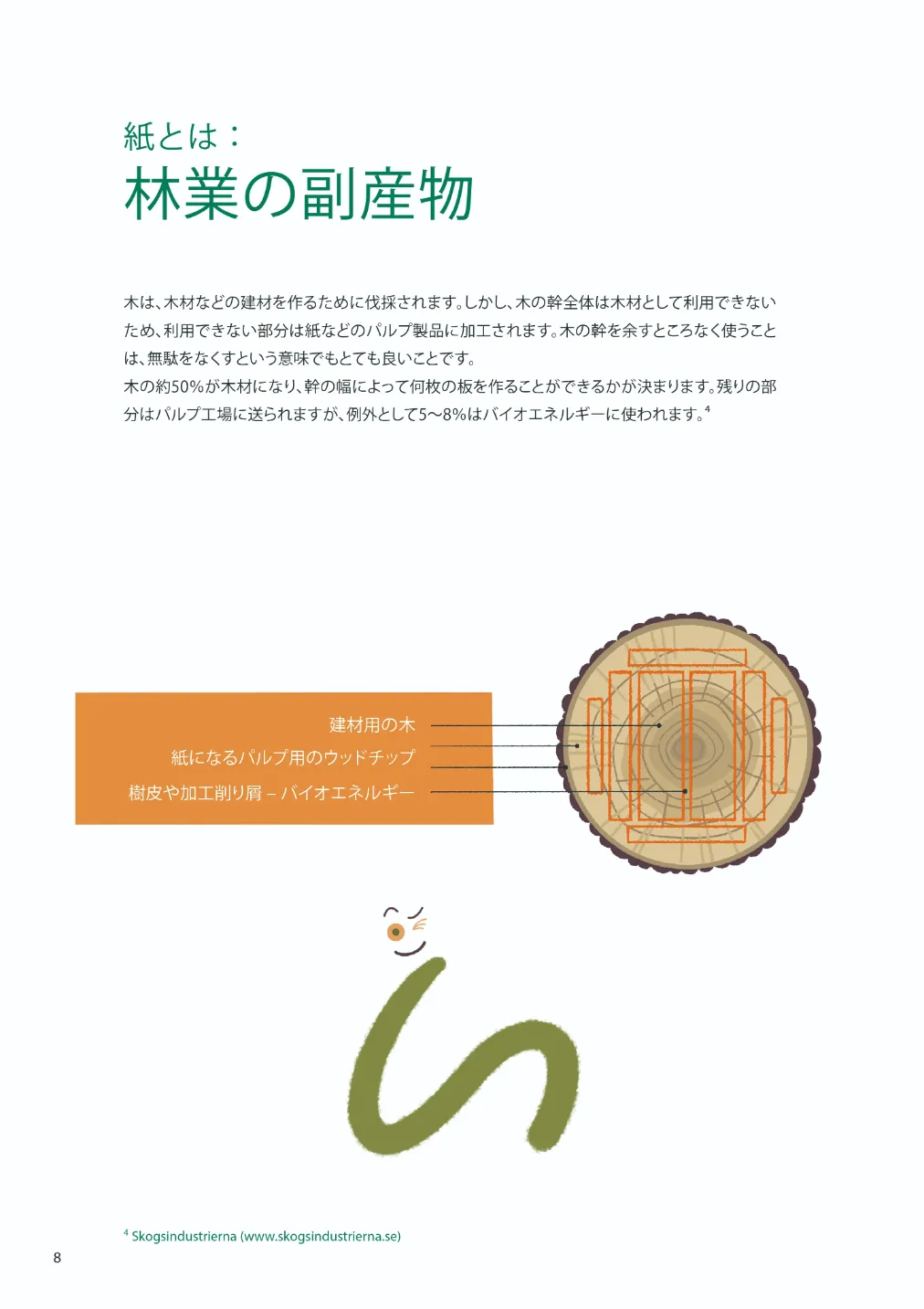 木材として使用された残り部分を原料としています。